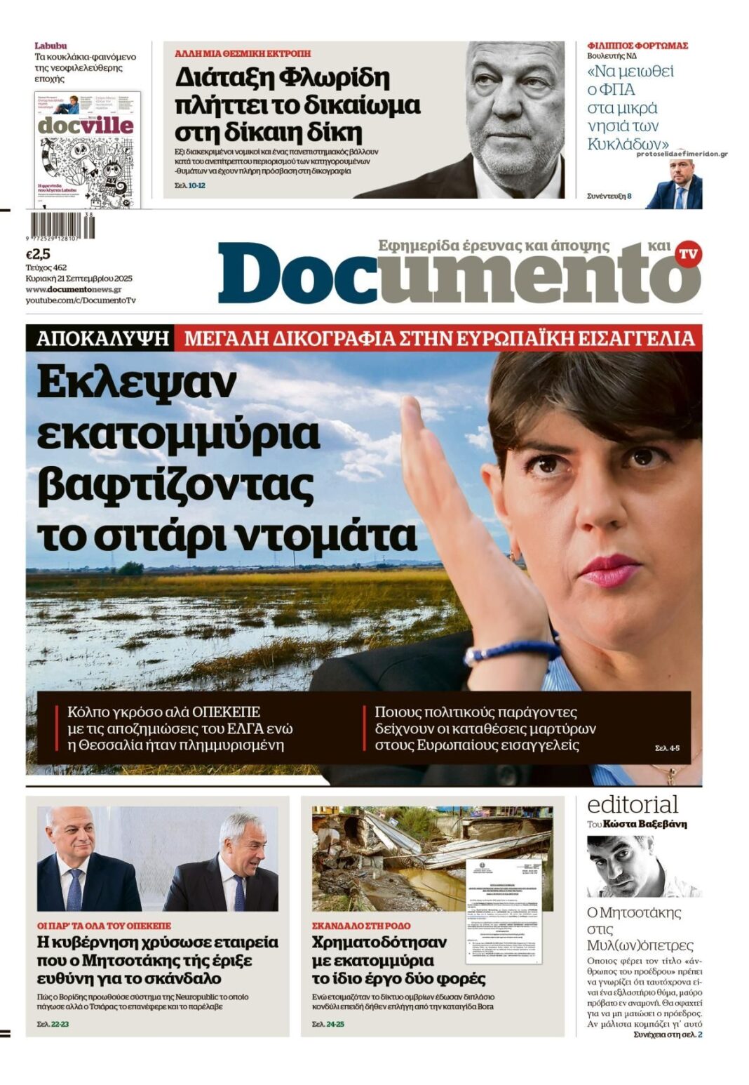Αποκαλυπτικη και αυτή την Κυριακή η εφημερίδα Documento