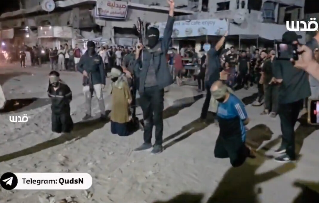 Χθες δημοσιεύθηκε, όχι και στα «χοντρά» μια είδηση με φωτογραφία να εκτελούνται σε κεντρική πλατεία, δημόσια και με κλεισμένα τα μάτια, τρείς γονατιστοί Παλαιστίνιοι, γιατί αν ήσαν όρθιοι μπορεί να τραυματίζονταν πίπτοντας σωριαζόμενοι νεκροί, από τρείς οπλοφόρους, ένας για τον καθένα, Χαματζήδες.
