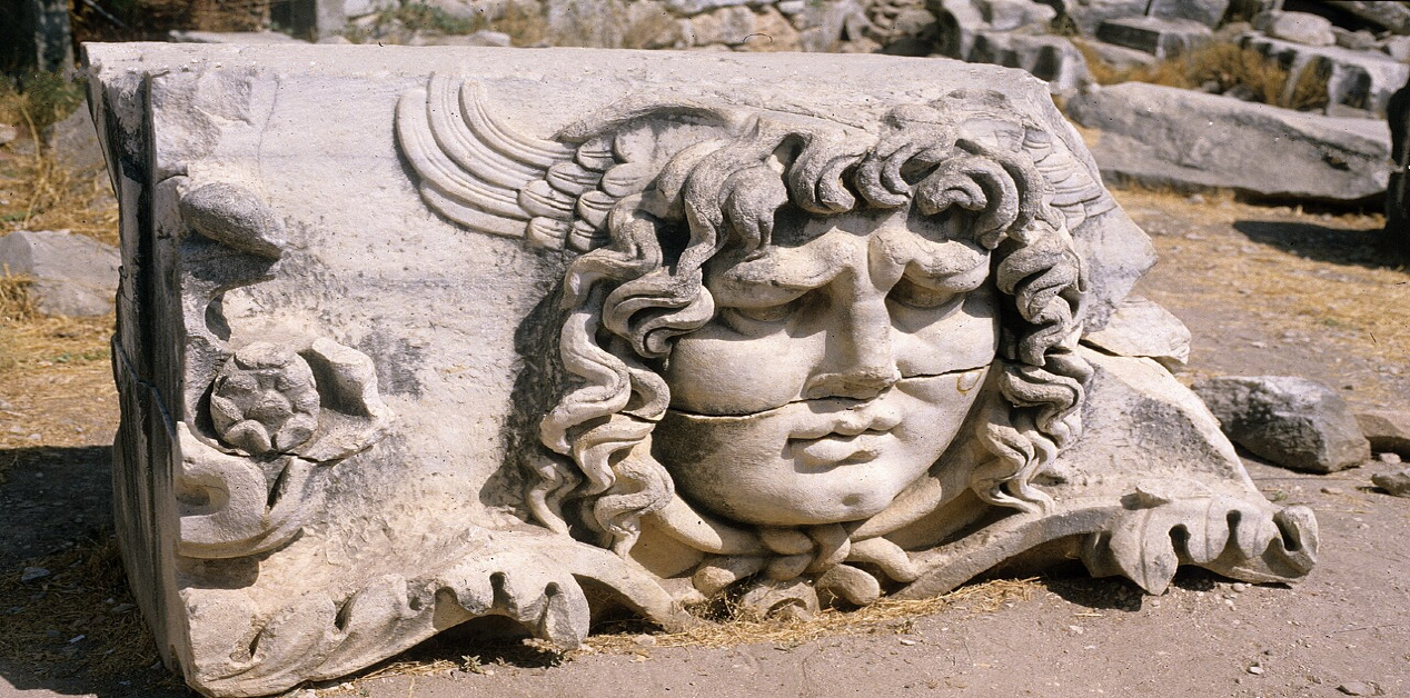 Μαρμάρινο γλυπτό Γοργόνειο, το οποίο κάποτε κοσμούσε ως μέρος της ζωφόρου τον Ναό του Απόλλωνα στα Δίδυμα της Μικράς Ασίας. 2ος αιώνα μ.Χ. Εικόνα: Dagmar Hollmann