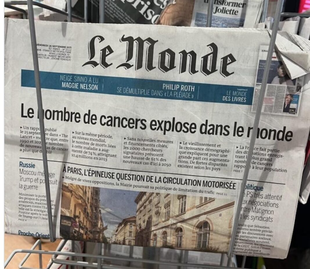 Η εφημερίδα Le Monde κυκλοφόρησε με πρωτοσέλιδο τίτλο: “Ο αριθμός των καρκίνων θα εκτοξευθεί παγκοσμίως ως το 2025”. Στο άρθρο παρουσιάζεται μια μελέτη που χρηματοδοτείται από το Ίδρυμα Gates…