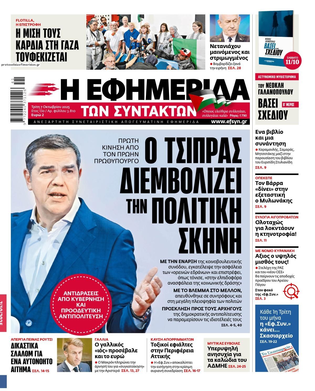Δείτε εδώ τα πρωτοσέλιδα των εφημερίδων σήμερα Τριτη 07 Οκτωβρίου 2025. Συνεχίστε την ανάγνωση.
