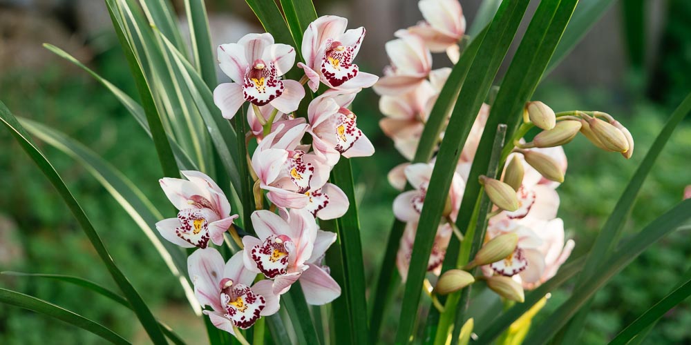Ανάμεσα από τα στενόμακρα δερματώδη φύλλα της, η ορχιδέα σιμπίντιουμ σχηματίζει εντυπωσιακά άνθη μέσα στην καρδιά του χειμώνα που διαρκούν από 1 εως 3 μήνες.