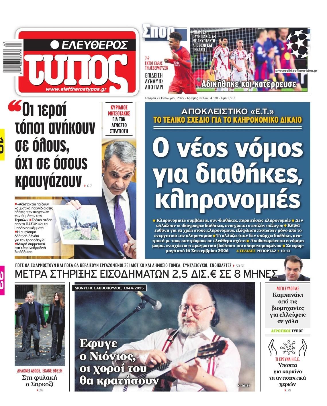 Δείτε εδώ τα πρωτοσέλιδα των εφημερίδων σήμερα Τέταρτη 22 Οκτωβρίου 2025. Συνεχίστε την ανάγνωση.