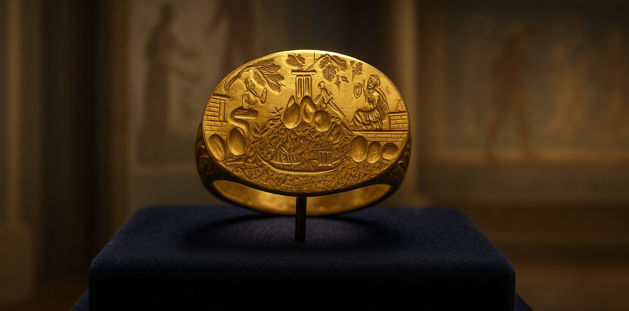Το Αρχαιολογικό Μουσείο Ηρακλείου εκθέτει σήμερα το αυθεντικό, χρυσό μινωικό δαχτυλίδι, το οποίο λάμπει ως ένα από τα σημαντικότερα μινωικά ευρήματα της Κρήτης.