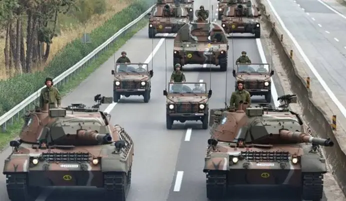 Στο έδαφος, τα άρματα μάχης Leopard του Ελληνικού Στρατού παρουσιάστηκαν με νέες αμυντικές δομές, ενώ μίνι-drones και αυτόνομα ελικόπτερα έδειξαν την πρόοδο της αεροπορίας.