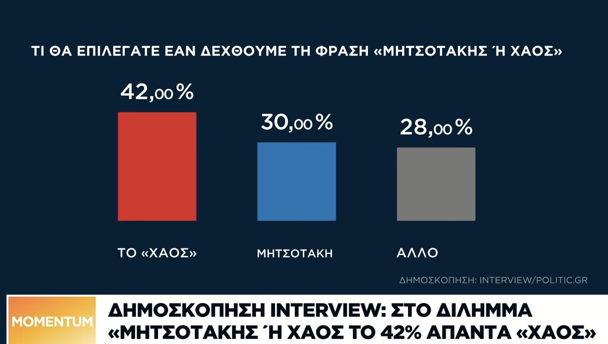Πρόσφατη δημοσκόπηση (της interview) στο ερώτημα «Μητσοτάκης ή Χάος»
