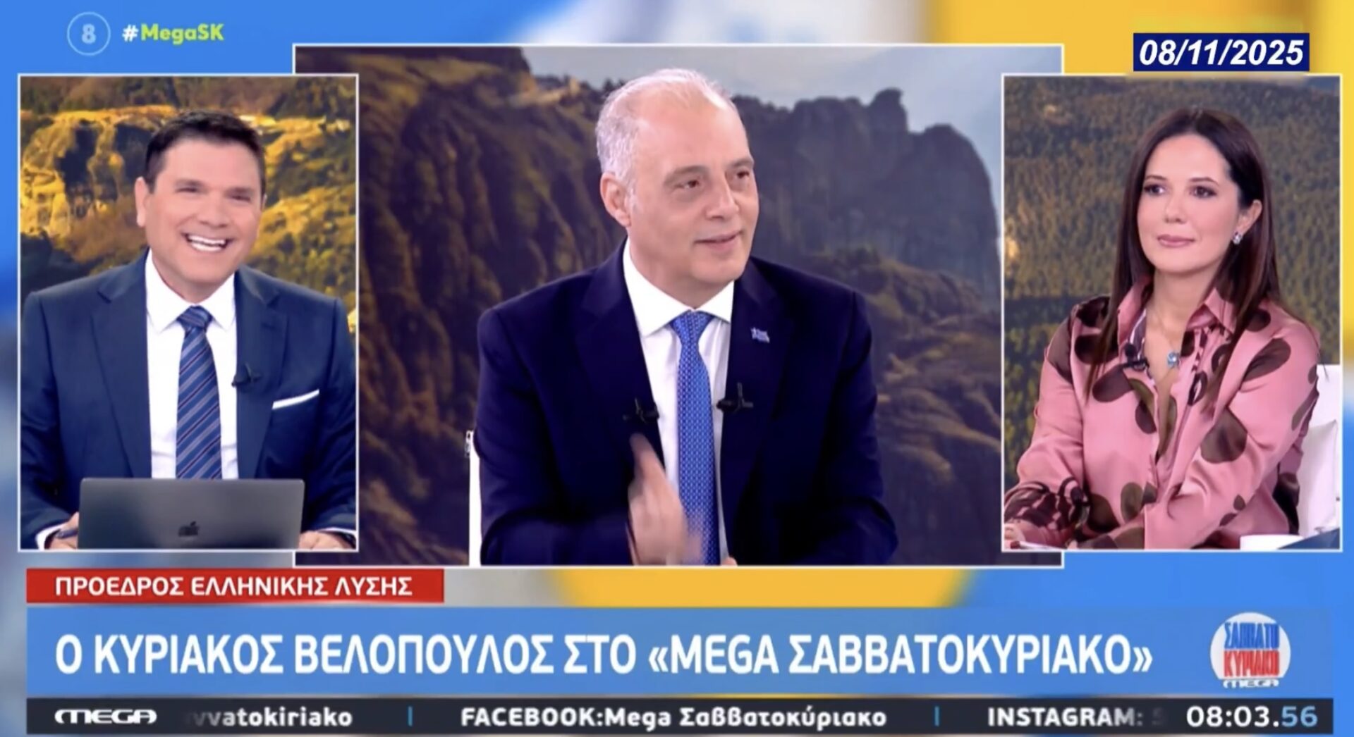 Όλη η συνέντευξη του προέδρου της Ελληνικής Λύσης Κυριάκου Βελόπουλου στο Mega με τους δημοσιογράφους Ντίνο Σιωμόπουλο και Στέλλα Γκαντονα