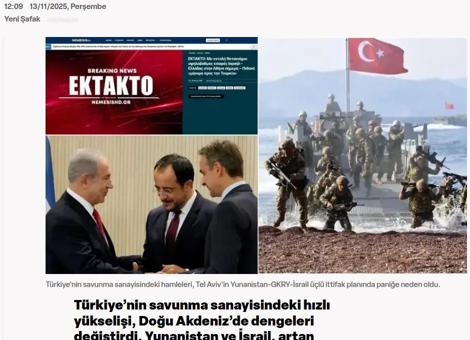 Αυτο γράφει η τουρκική εφημερίδα Yeni Şafak και συνεχίζει: