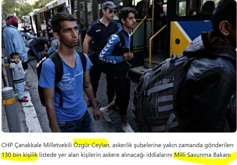 Ο βουλευτής του CHP που εκλέγεται στα Δαρδανέλια, Οζγκιούρ Τζεϊλάν, ρώτησε τον υπουργό Εθνικής Άμυνας Γιασάρ Γκιουλέρ και τον υπουργό Εσωτερικών Αλί Γερλικαγιά σχετικά με τις πληροφορίες ότι άτομα σε μια λίστα 130.000 ατόμων που στάλθηκε πρόσφατα σε γραφεία στρατολόγησης θα στρατευτούν.