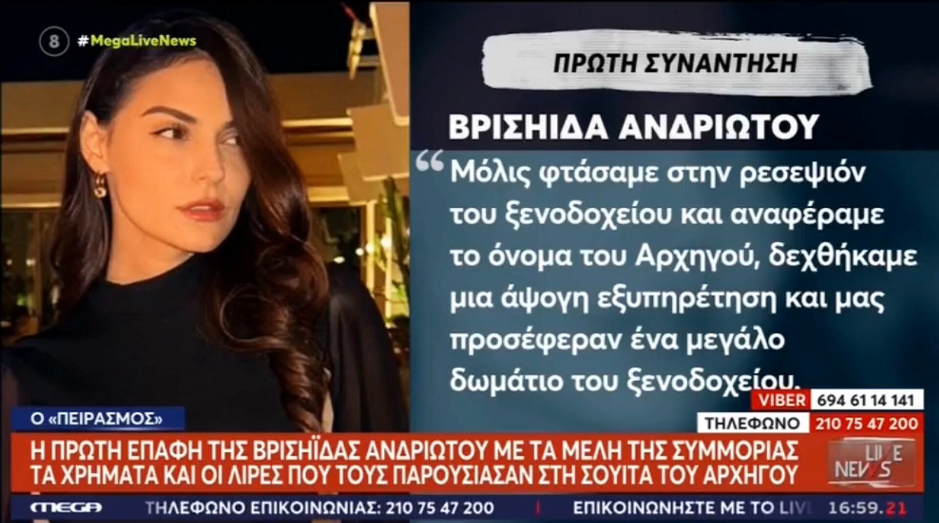 Μιλώντας στην εκπομπή του Νίκου Ευαγγελάτου στο Mega η Βρισηίδα Ανδριώτου ανέφερε: