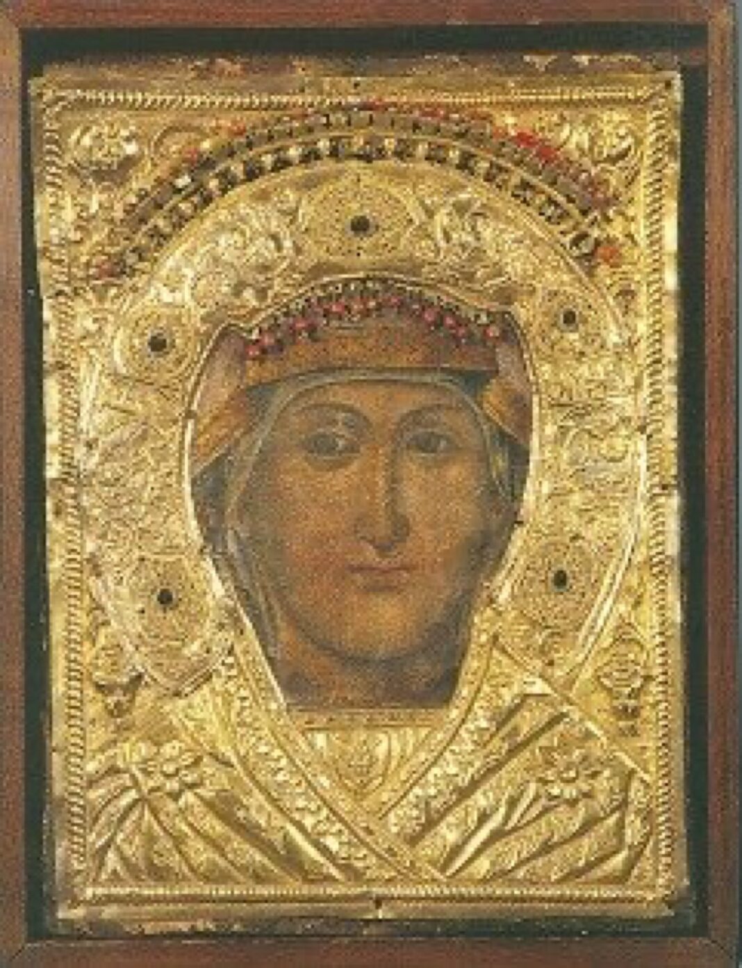 *Η εικόνα της Παναγίας της Εικονίστριας, όπως είναι το κανονικό της όνομα, που ήταν η αγαπημένη του Παπαδιαμάντη, βρέθηκε στη Σκιάθο περί το 1650, με θαυμαστό τρόπο στα κλαδιά ενός πεύκου.