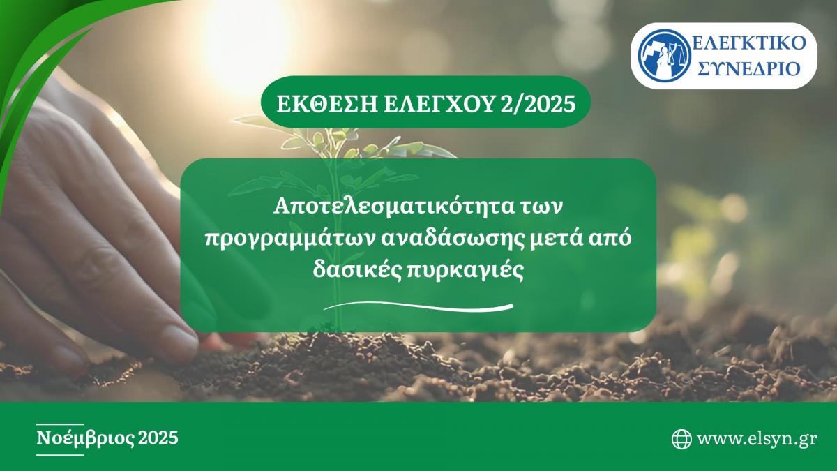 Το Ελεγκτικό Συνέδριο δημοσιεύει σήμερα την Έκθεση Ελέγχου 2/2025: «Δασικές πυρκαγιές: Έχει μελετηθεί και παρακολουθείται η αποτελεσματικότητα των προγραμμάτων αναδάσωσης;»