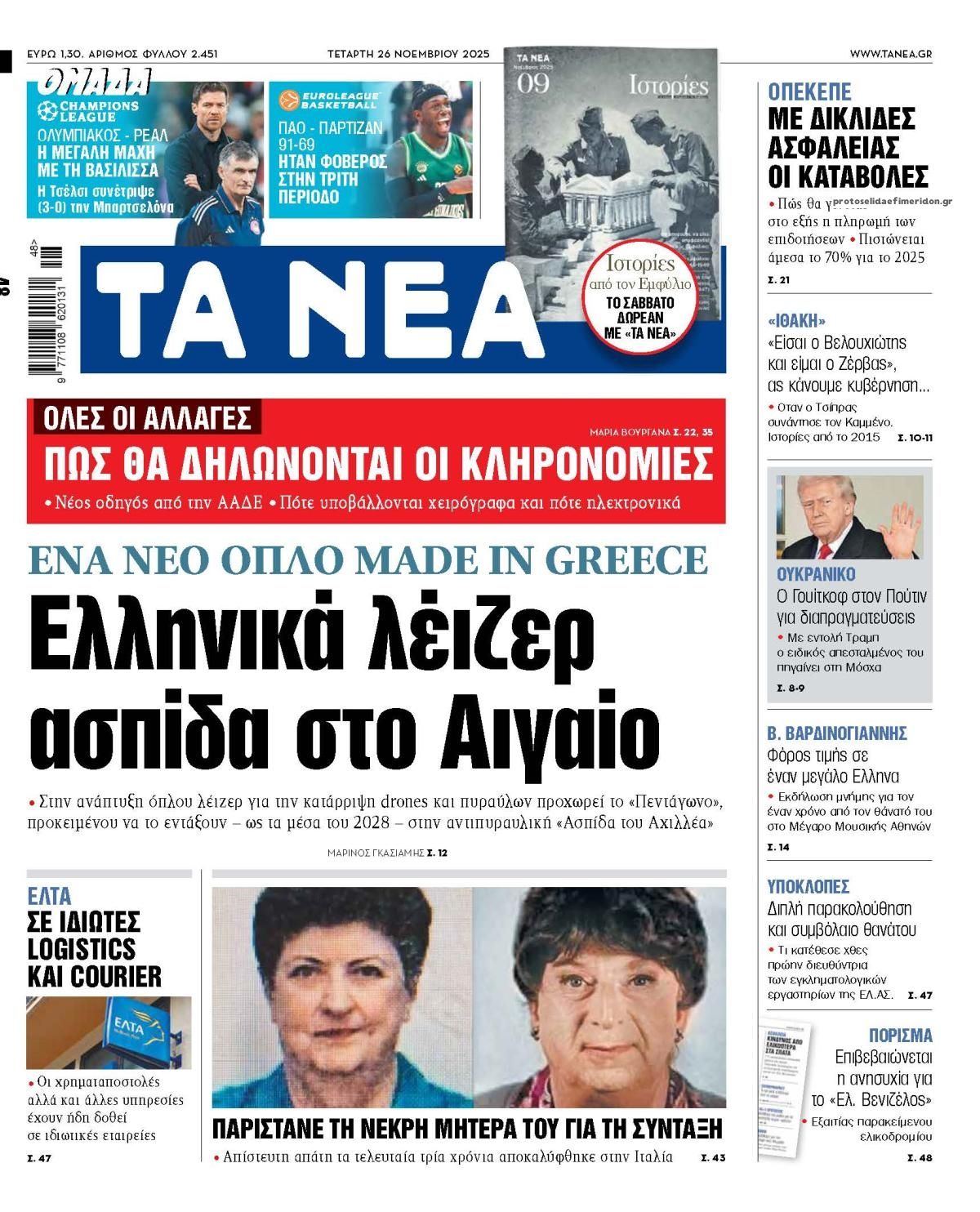 Δείτε εδώ τα πρωτοσέλιδα των εφημερίδων σήμερα Τεταρτη 26 Νοεμβρίου 2025. Συνεχίστε την ανάγνωση.