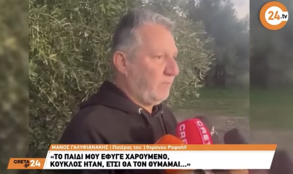 Αυτό δήλωσε ο πατέρας του 19χρονου Ραφαήλ, Μάνος Γαλυφιανάκης, λίγη ώρα αφότου επέστρεψε στο σπίτι του στο Τυμπάκι, με τη σορό του γιου του.