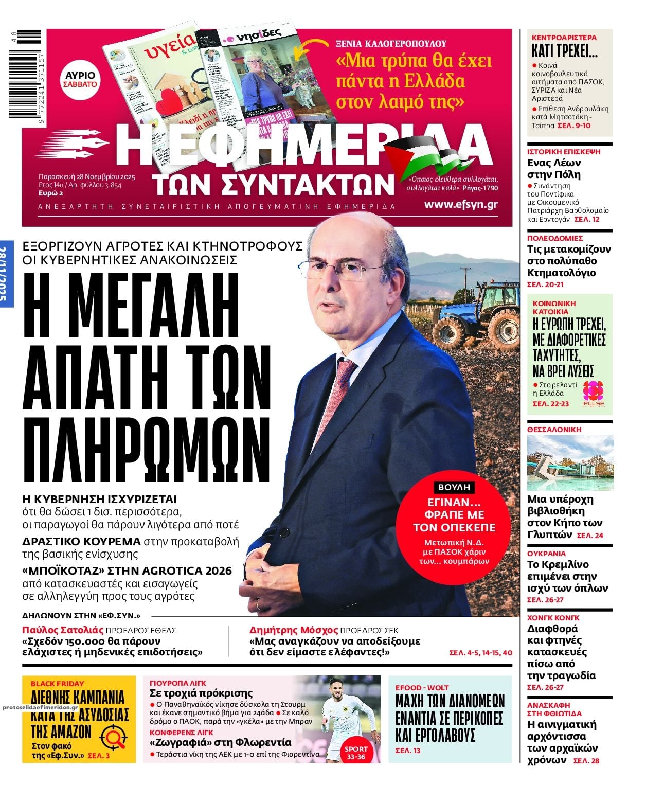 Δείτε εδώ τα πρωτοσέλιδα των εφημερίδων σήμερα Παρασκευή 28 Νοεμβρίου  2025. Συνεχίστε την ανάγνωση.