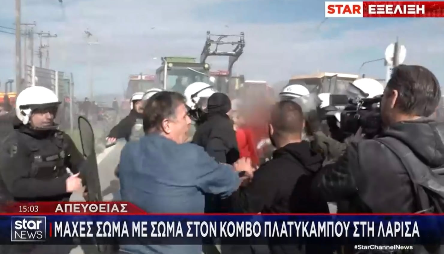 Μάλιστα, για να τα καταφέρουν, οι αγρότες που αρχικά κινήθηκαν με τα πόδια στον κόμβο της Νίκαιας και ήρθαν αντιμέτωποι με ισχυρές αστυνομικές δυνάμεις, με αποτέλεσμα να ακολουθήσαν μάχες σώμα με σώμα, και ρίψη χημικών και κρότου λάμψης, έσπασαν κιγκλιδώματα στον αυτοκινητόδρομο, απ’ όπου και πέρασαν με τα τρακτέρ τους για να αποκλείσουν την κυκλοφορία.