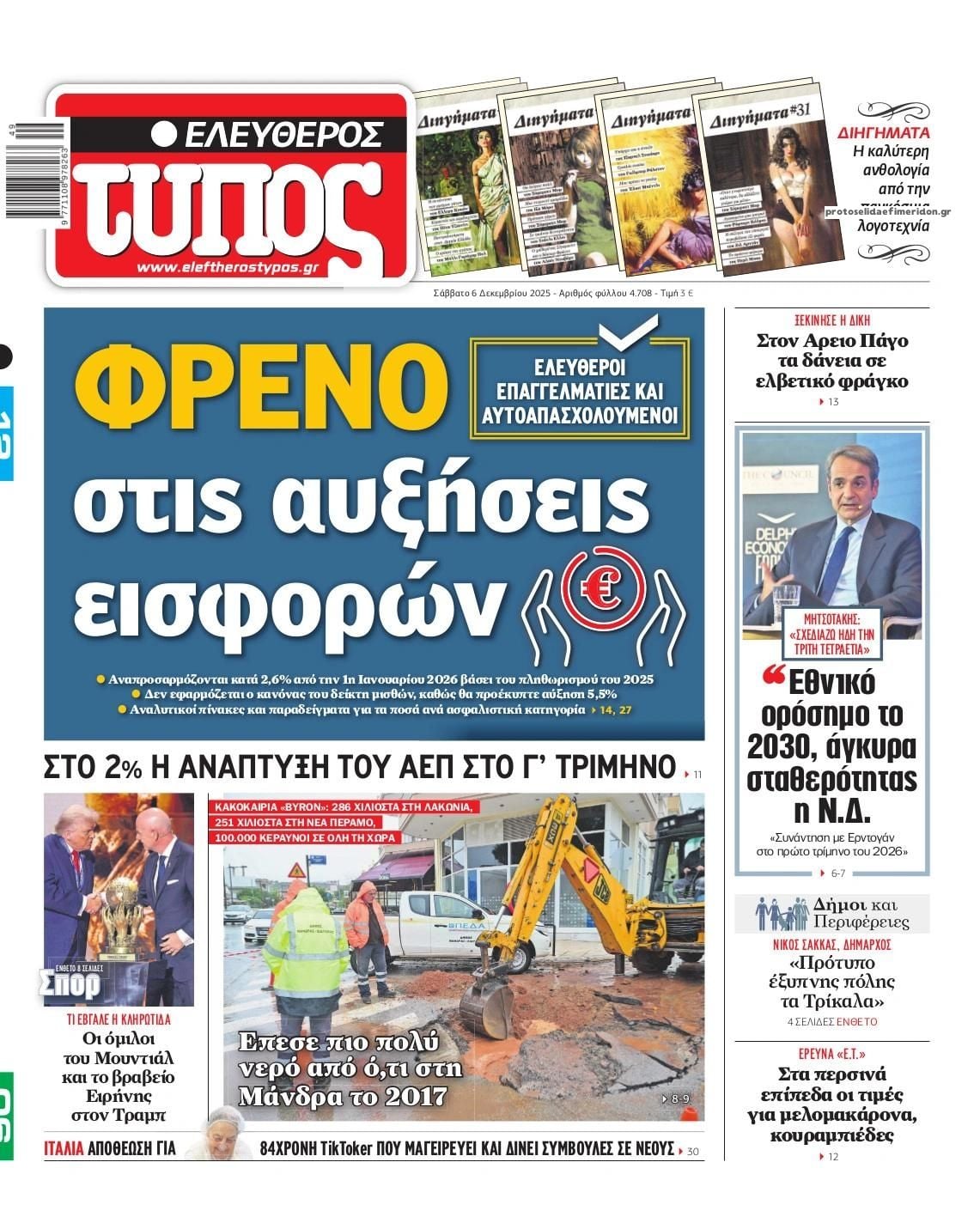 Δείτε εδώ τα πρωτοσέλιδα των εφημερίδων σήμερα Σάββατο 06 Δεκεμβρίου 2025. Συνεχίστε την ανάγνωση.