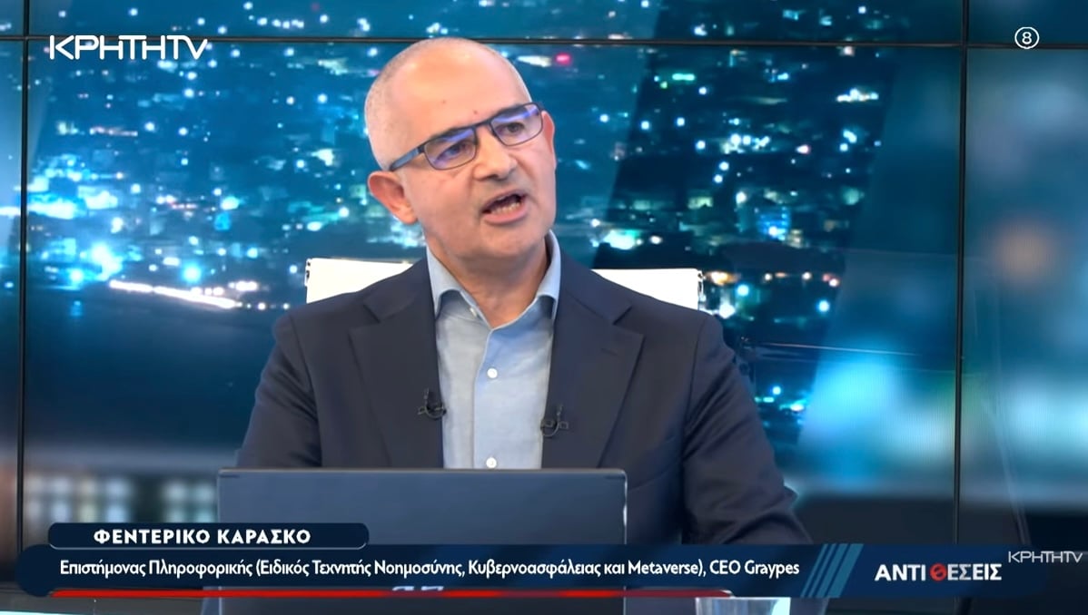 Ο Φεντερίκο Καράσκο, ειδικός σε θέματα πληροφορικής και κυβερνοασφάλειας, με σπουδές στη Σχολή του Πανεπιστημίου Πατρών Μηχανικών Η/Υ και Πληροφορικής, ιδρυτής και CEO της Graypes GmbH , σε μια συνέντευξη – πρόκληση :