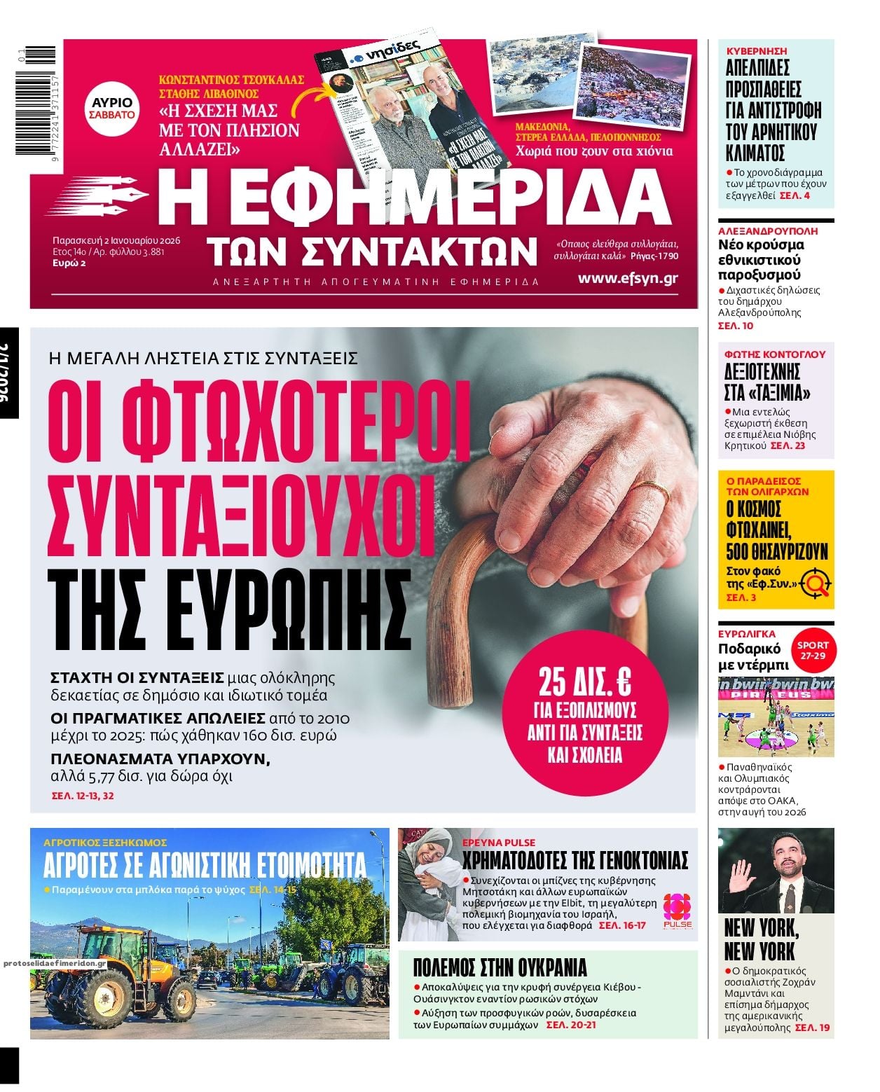 Δείτε εδώ τα πρωτοσέλιδα των εφημερίδων σήμερα Σάββατο 27 Δεκεμβρίου 2025. Συνεχίστε την ανάγνωση.