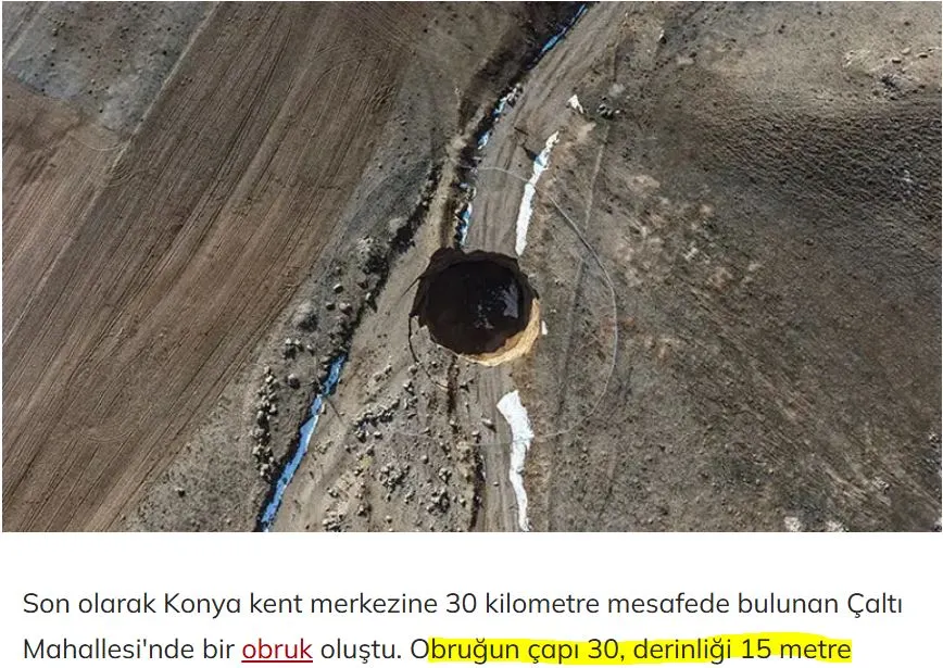 Σύμφωνα με τον Τούρκο καθηγητή Γεωλογίας του Τεχνικού Πανεπιστημίου Ικονίου οι καταβόθρες θα συνεχιστούν λόγω της έλλειψης υδάτων στα κάτω στρώματα της επιφάνειας.