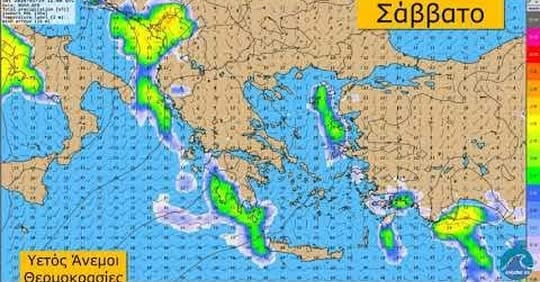Λίγα φαινόμενα την Παρασκευή στα νότια και βελτιωση με άνοδο της θερμοκρασίας το Σαββατοκύριακο. Νεα μεταβολή του καιρού από βδομάδα με πολλές βροχές κυρίως στα Δυτικά τα Βόρεια και το Ανατολικό Αιγαίο , πιθανόν ισχυρές».