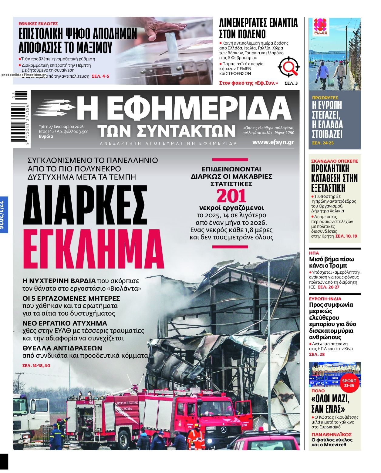 Δείτε εδώ τα πρωτοσέλιδα των εφημερίδων σήμερα Τρίτη 20 Ιανουαρίου 2026. Συνεχίστε την ανάγνωση.