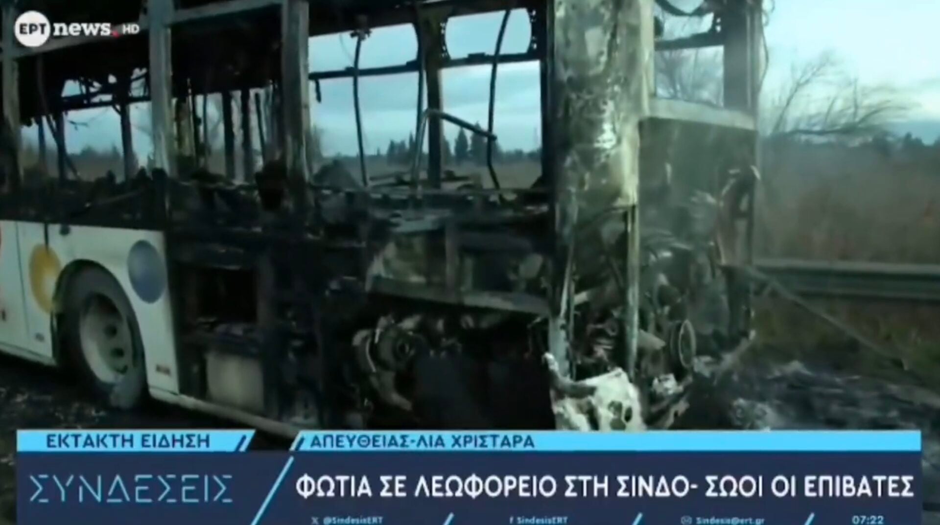 Το όχημα καταστράφηκε ολοσχερώς. Σύμφωνα με πληροφορίες είναι το δεύτερο λεωφορείο που καίγεται μέσα σε 3 μέρες.