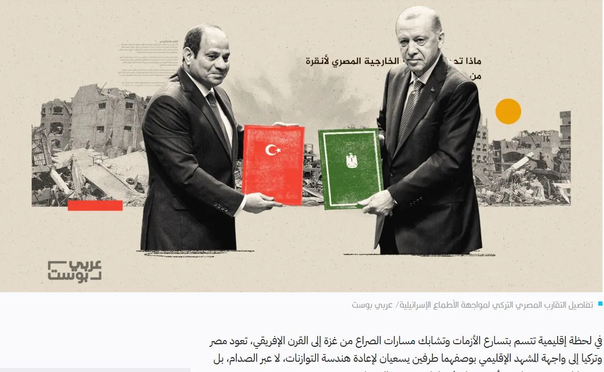 Ταυτόχρονα, η Αίγυπτος και η Τουρκία επιδιώκουν, μέσω αυτού του συντονισμού και της προσέγγισης, να θέσουν τα θεμέλια και τους κανόνες για τις περιφερειακές σχέσεις.
