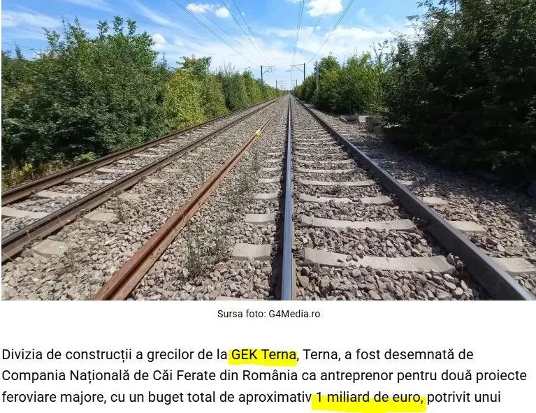 Terna, ορίστηκε από την Εθνική Εταιρεία Σιδηροδρόμων της Ρουμανίας ως ανάδοχος για δύο μεγάλα σιδηροδρομικά έργα, συνολικού προϋπολογισμού περίπου 1 δισεκατομμυρίου ευρώ, σύμφωνα με ανακοίνωση της εταιρείας προς το χρηματιστήριο, γράφει το Reuters.