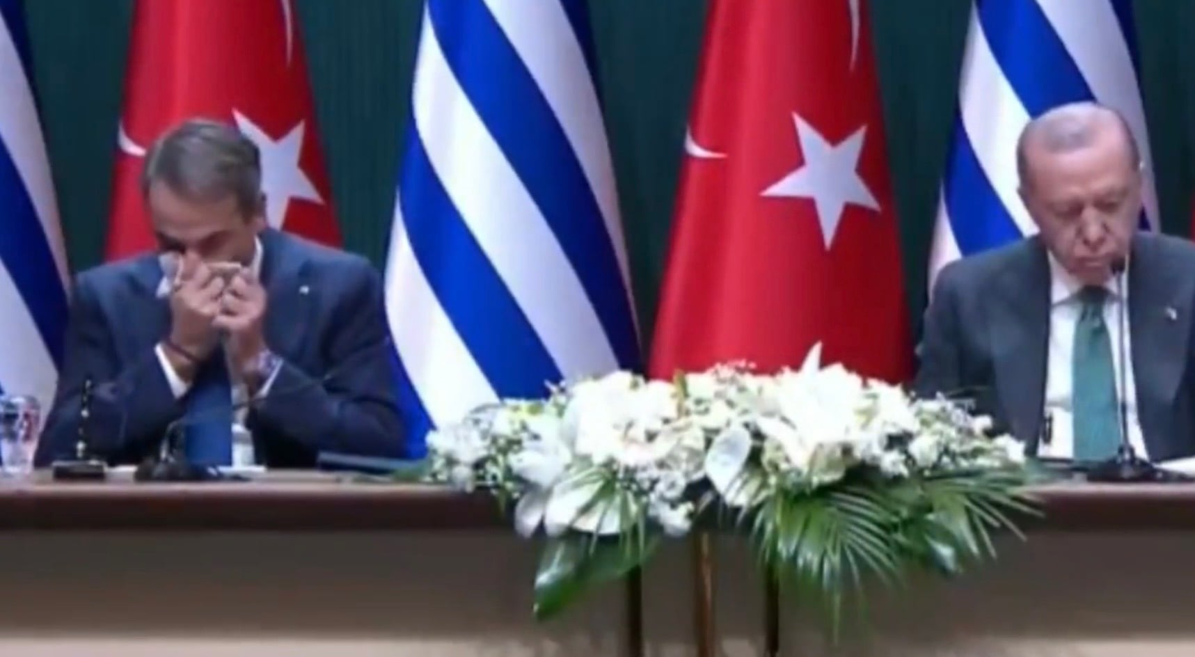 Viral εχει γίνει το βίντεο με την άνθρωπινη στιγμή του πρωθυπουργού να σκουπίζει την μύτη του την ώρα που έκανε δηλώσεις ο Ερντογαν