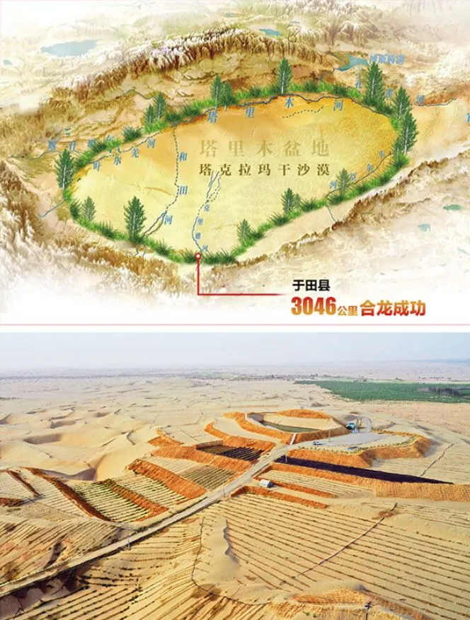 Το 2024, το Πεκίνο ανακοίνωσε ότι είχε τελικά ολοκληρώσει την πράσινη ζώνη 3.000 χλμ. που περιβάλλει την έρημο Τακλαμακάν, σταθεροποιώντας τους αμμόλοφους και αυξάνοντας την εθνική δασική κάλυψη από 10% σε πάνω από 25%.