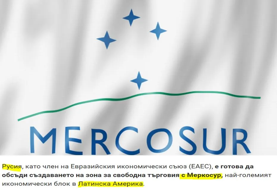 «Η Ρωσία αξιολογεί επίσης τις πιθανές προοπτικές για διαπραγματεύσεις με τη Mercosur, το μεγαλύτερο οικονομικό μπλοκ στην περιοχή», δήλωσε ο Οβερτσούκ.