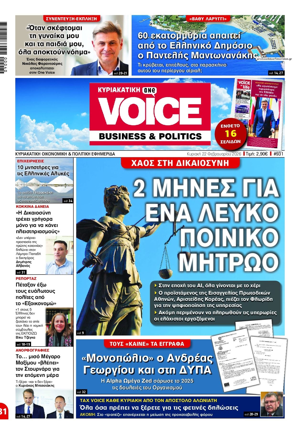 Το πρωτοσέλιδο του Κυριακάτικου Documento του Κωστα Βαξεβάνη