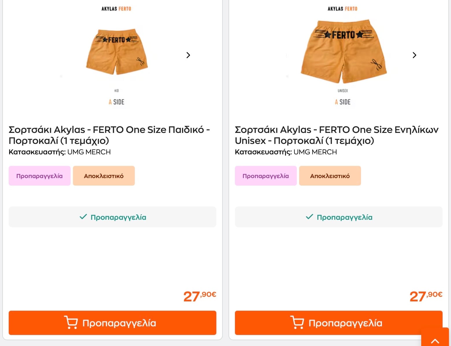 Στην ιστοσελίδα γνωστού πολυκαταστήματος πωλούνται προϊόντα με το logo Ferto σε τιμές αρκετά υψηλές θα έλεγε κανείς. Συγκεκριμένα το σκουφάκι κάνει 27,90 ευρώ. Στα ιδια επίπεδα και τα σορτσάκια του.