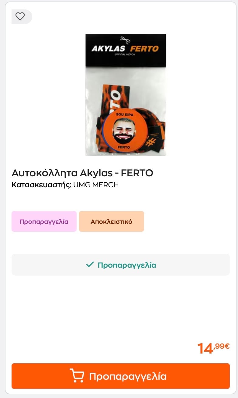Είναι η πρώτη φορά στα ελληνικά χρονικά της Eurovision που ένας καλλιτέχνης βγάζει δικά του προϊόντα στην αγορά και το κυριότερο, γίνεται χαμός με τις παραγγελίες από το κοινό που θέλει να τον στηρίξει και οικονομικά σε όλη αυτή την προσπάθεια που κάνει.