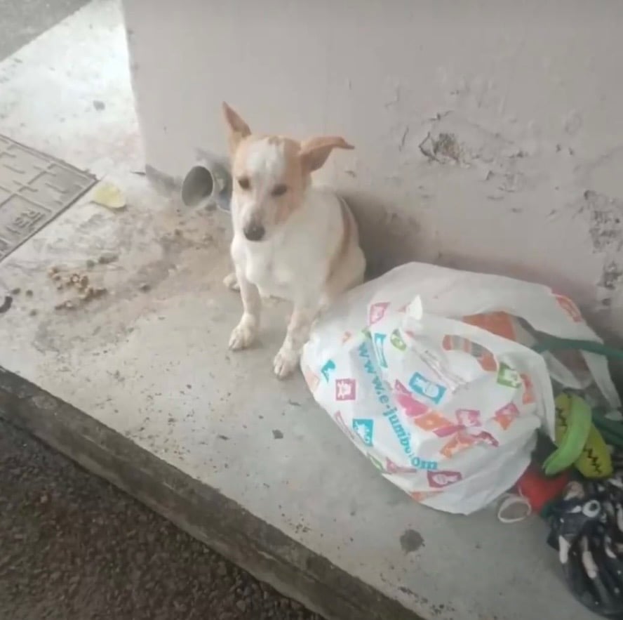 το σκυλάκι εγκαταλείφθηκε από τους ιδιοκτήτες του σε στάση λεωφορείου στη Λεμεσό, μαζί με τα προσωπικά του αντικείμενα και λίγη τροφή.