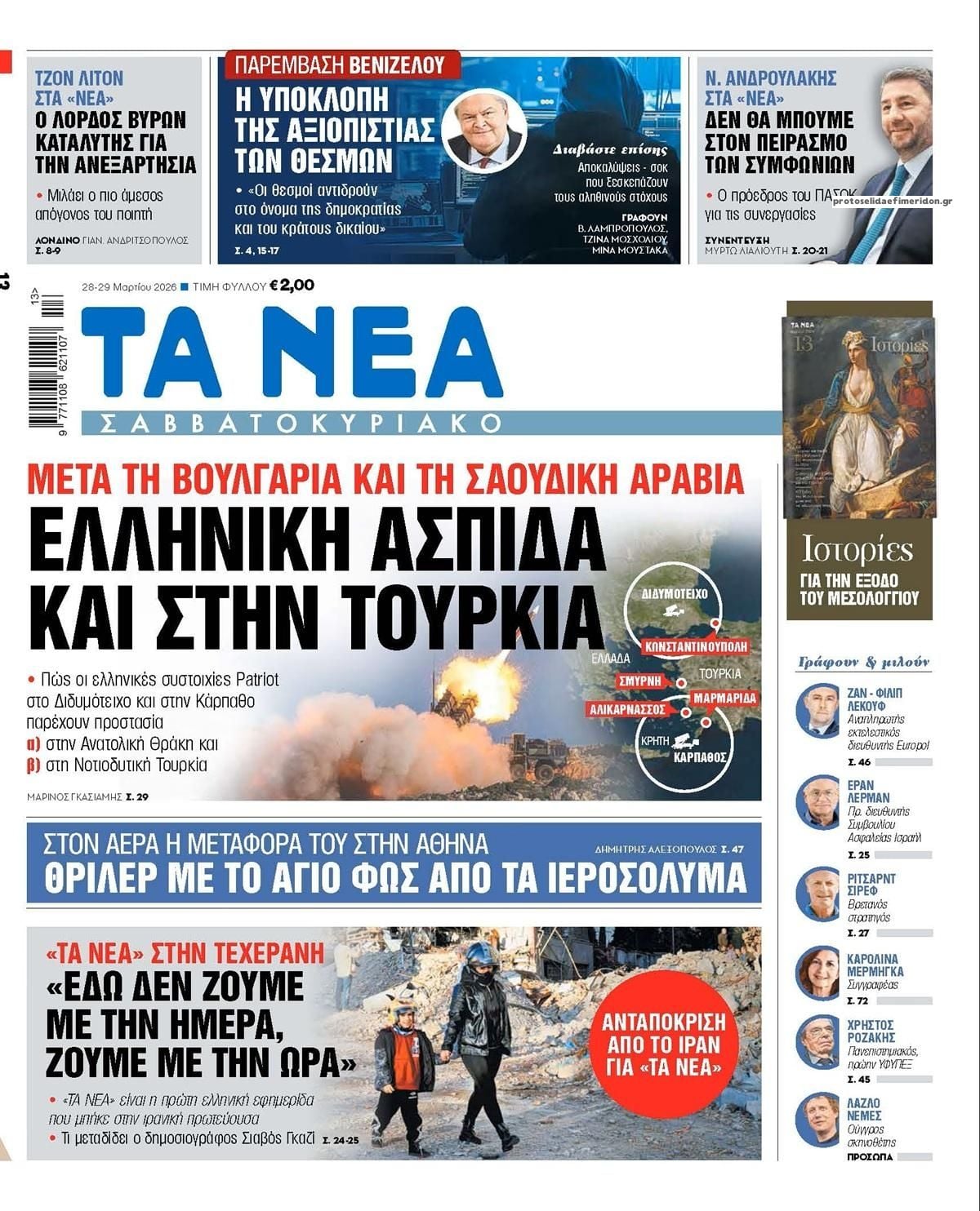 Τα πρωτοσέλιδα των εφημερίδων σήμερα Σάββατο