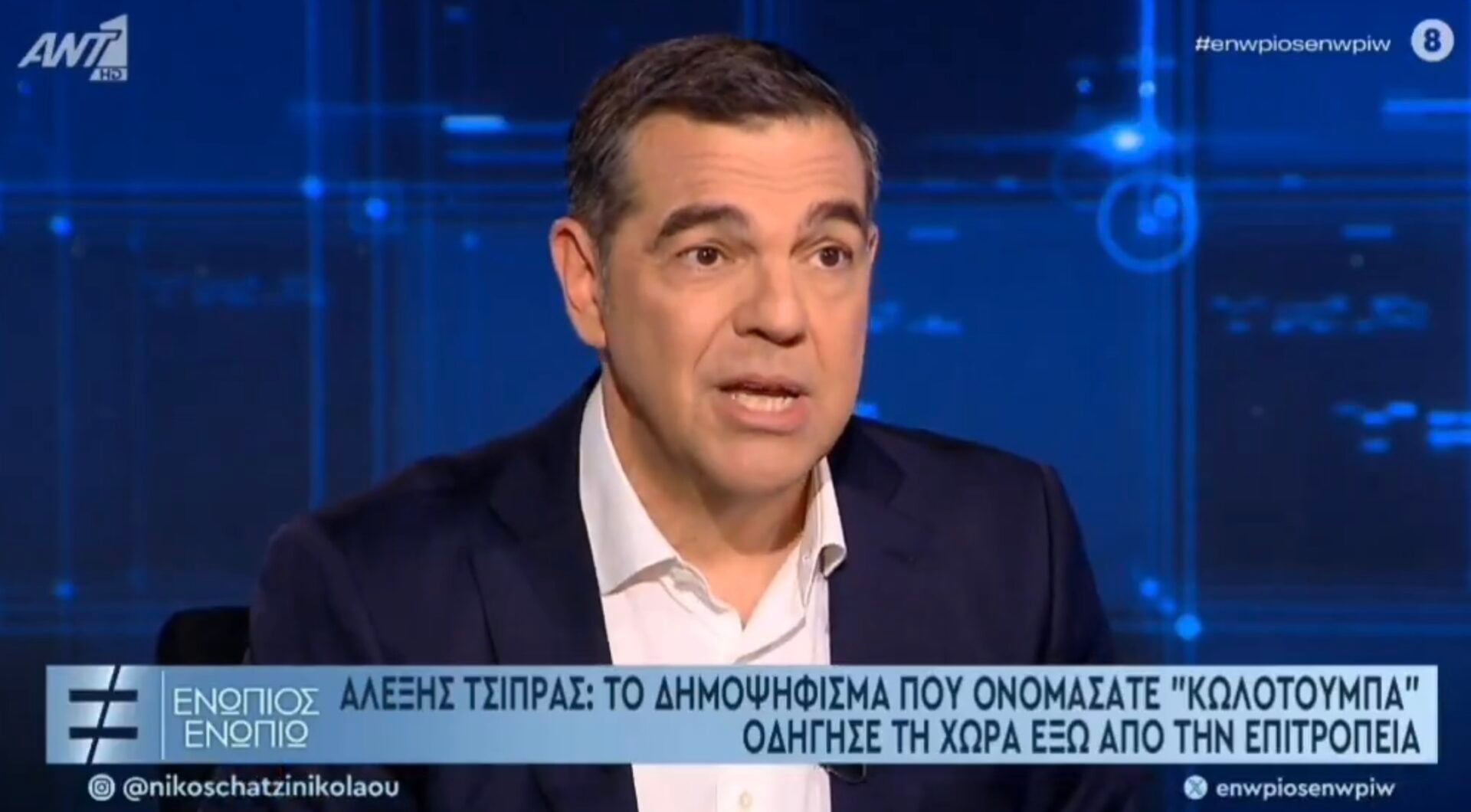 Αυτή την Πέμπτη στις 23:20 ο πρώην πρωθυπουργός Αλέξης Τσίπρας στην πρώτη του συνέντευξη μετά από τρία χρόνια, στο Ενώπιος Ενωπίω και στον Αντέννα.https://twitter.com/nchatzinikolaou/status/2038336763131772997?s=61