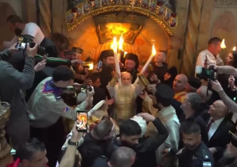 Με λαμπρότητα μόλις ολοκληρώθηκε η τελετή αφής του Αγίου Φωτός στον Πανάγιο Τάφο στα Ιεροσόλυμα