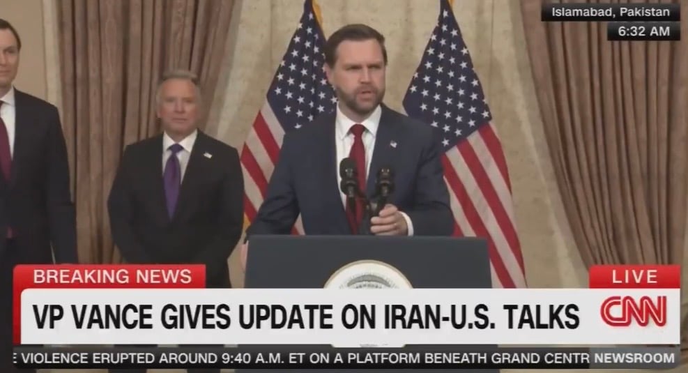 Από την πλευρά του, ο Αμερικανός αντιπρόεδρος Τζέι Ντι Βανς, κατά τη διάρκεια σύντομης συνέντευξης Τύπου στο Ισλαμαμπάντ μετά την ολοκλήρωση των συνομιλιών, δήλωσε πως «θα επιστρέψουμε στις ΗΠΑ χωρίς να έχουμε κλείσει συμφωνία» και υποστήριξε ότι «νομίζω πως είναι κακό νέο περισσότερο για το Ιράν απ’ ό,τι για τις ΗΠΑ».