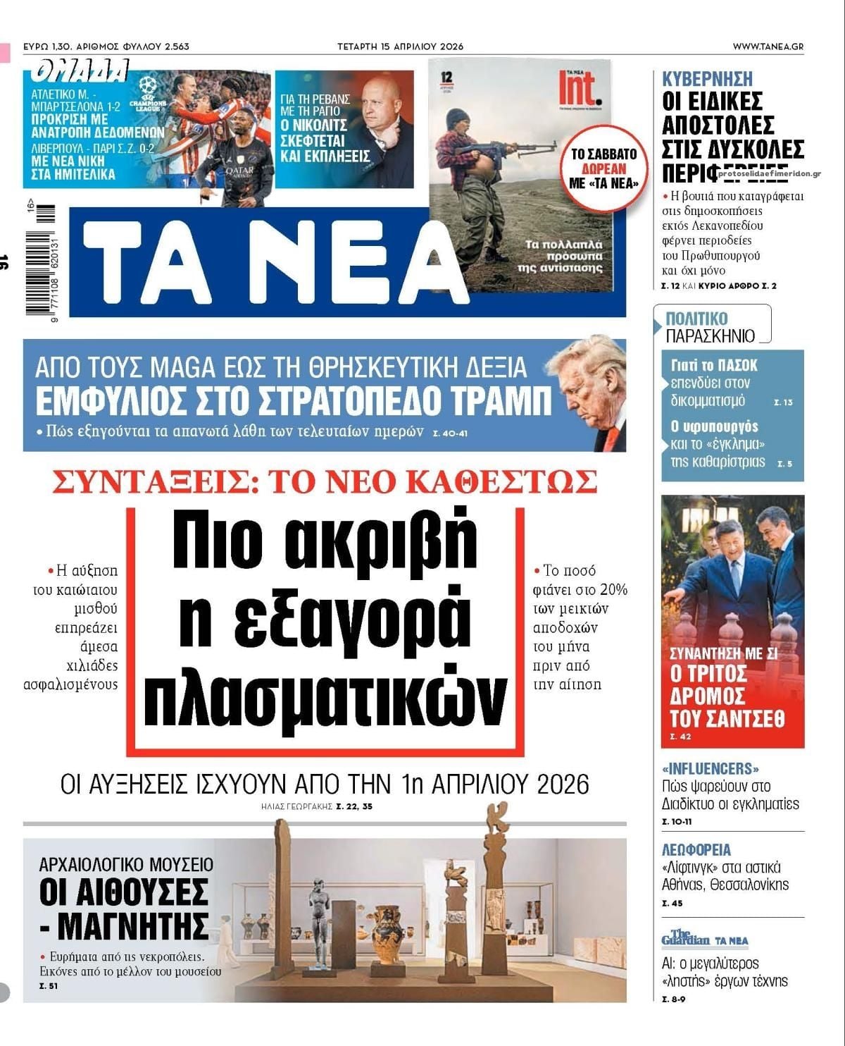Δείτε εδώ τα πρωτοσέλιδα των εφημερίδων σήμερα Τετάρτη 15 Απριλίου  2026. Συνεχίστε την ανάγνωση.