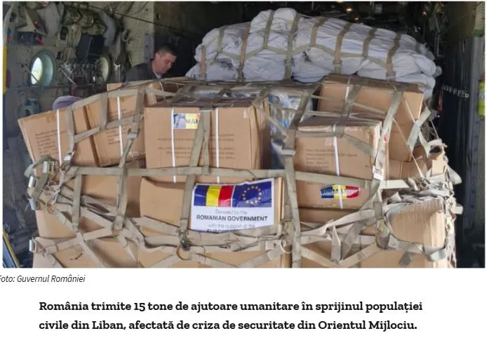Η Ρουμανία στέλνει 15 τόνους ανθρωπιστικής βοήθειας στον άμαχο πληθυσμό του Λιβάνου που έχει πληγεί από τον πόλεμο μεταξύ της Χεζμπολάχ και του Ισραήλ