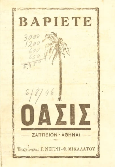 Ήδη από τις αρχές του Μαίου τον τόνο έδιναν τα δυο εκλεκτά κέντρα του Ζαππείου η «Όαση» και τα «Πεύκα». Στην «Όαση» φημολογείτο ότι θα εμφανίζονταν η Ντιριντάουα που ήταν τότε στο απόγειο της δόξας της και σαγήνευε τα αθηναϊκό κοινό. Αλλά σ΄ αυτή την κατεύθυνση κινούνταν και οι θεατρικοί επιχειρηματίες της «Όασης» Γ. Νέγρης και Φ. Μιχαλάτος, που ήταν διατεθειμένοι επενδύοντας, να παρουσιάσουν ένα υπερθέαμα στο αθηναϊκό κοινό. Είχαν διερευνήσει άλλες σημαντικές καλλιτεχνικές φίρμες της εποχής και προσδοκούσαν να εντάξουν στο δυναμικό της «Όασης» ότι λαμπρότερο καλλιτεχνικά κυκλοφορούσε τότε.