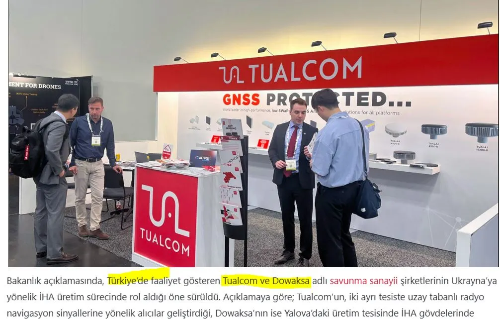 Το ρωσικό δημοσίευμα σημειώνει ότι η Tualcom ανέπτυξε δέκτες για διαστημικά σήματα ραδιοπλοήγησης σε δύο ξεχωριστές εγκαταστάσεις, ενώ η Dowaksa φέρεται να παρήγαγε υλικά από ανθρακονήματα που χρησιμοποιούνται σε σώματα UAV στις εγκαταστάσεις παραγωγής της στη Γιάλοβα.