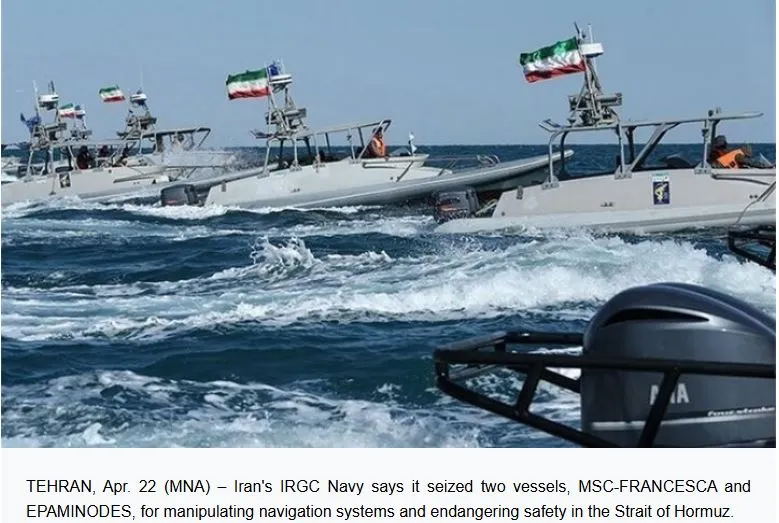 Η διοίκηση του Ναυτικού των Φρουρών της Επανάστασης (IRGC) αναγνώρισε τα κρατούμενα πλοία ως MSC-FRANCESCA, το οποίο χαρακτήρισε ως συνδεδεμένο με το ισραηλινό καθεστώς, και EPAMINODES.