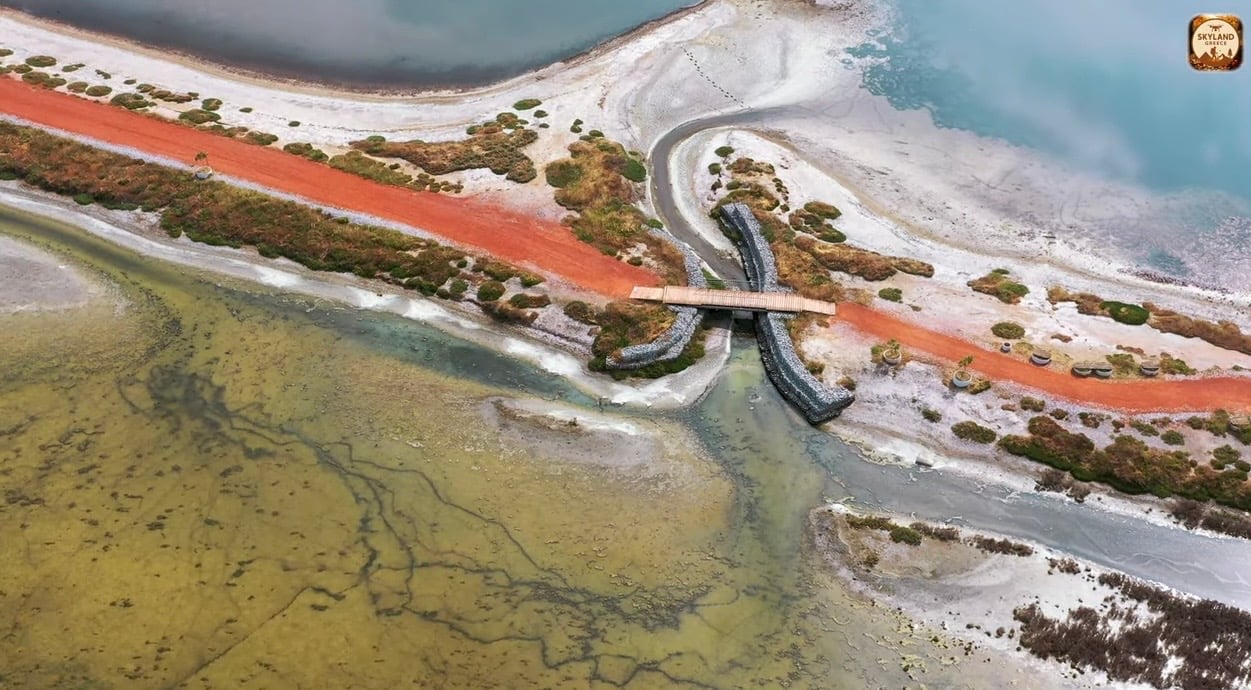 Τα φλαμίνγκο είναι οι πιο εντυπωσιακοί επισκέπτες της, καθώς τρέφονται με μικρούς οργανισμούς που δίνουν το χαρακτηριστικό ροζ χρώμα στα φτερά τους.