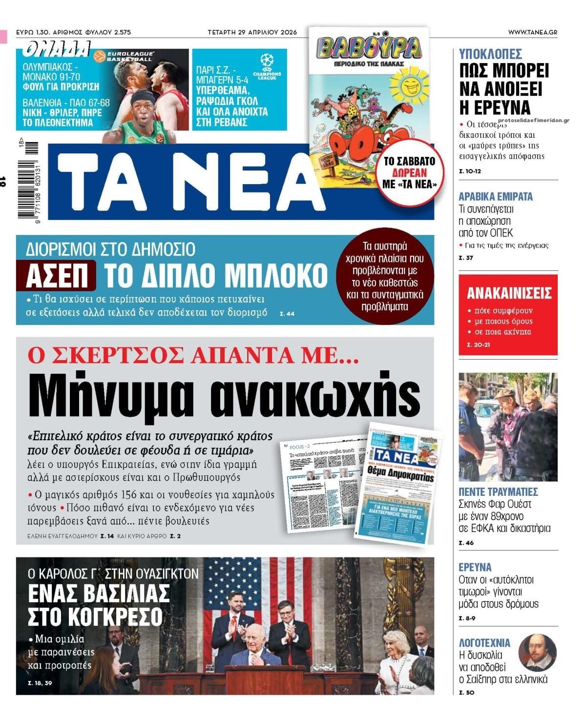 Δείτε εδώ τα πρωτοσέλιδα των εφημερίδων σήμερα Τέταρτη 29 Απριλίου 2026. Συνεχίστε την ανάγνωση.
