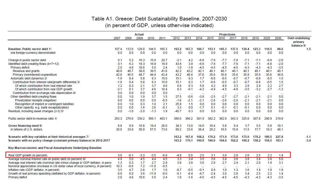 Δείτε το πόσο έξω έχει πέσει η τρόικα σε ένα από τους πιο σημαντικούς δείκτες, την πραγματική ανάπτυξη σε ποσοστό (%) επί του ΑΕΠ .