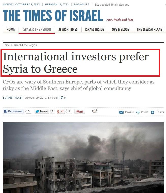 "Οι διεθνείς επενδυτές προτιμούν τη Συρία από την Ελλάδα.."