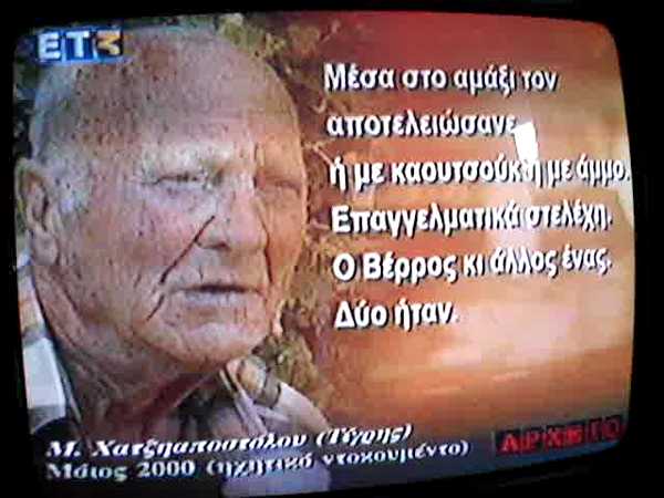 Είναι αλήθεια ότι το όνομα του κομμουνιστή που αναφέρει ο τίγρης (Χατζηαποστόλου) Βέρρου δεν αναφέρεται καθαρά. Από εκεί και πέρα όμως υπάρχει η εκπομπή της ΕΤ-3 που έγινε και το επαληθεύει.
